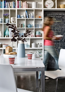 I love the idea of chalkboard's in one's kitchen. One of my friends had a chalkboard wall in the kitchen of her last house. She would always write a nice welcome message and the evening's menu on it when she'd have us over for dinner.