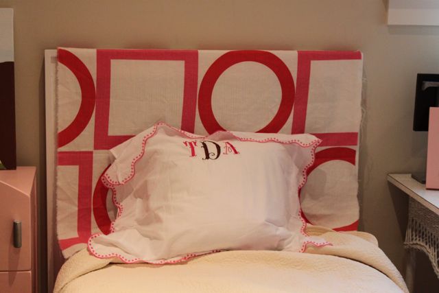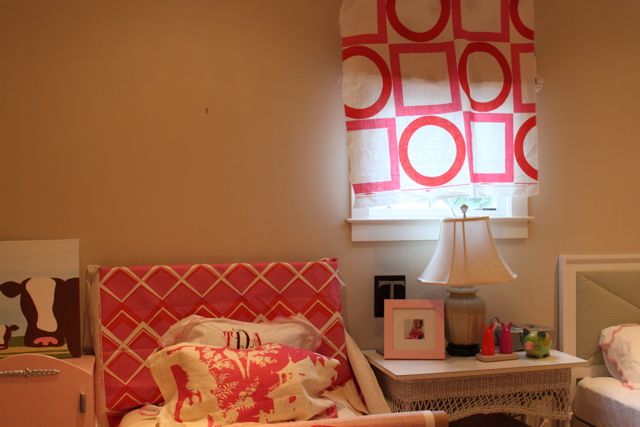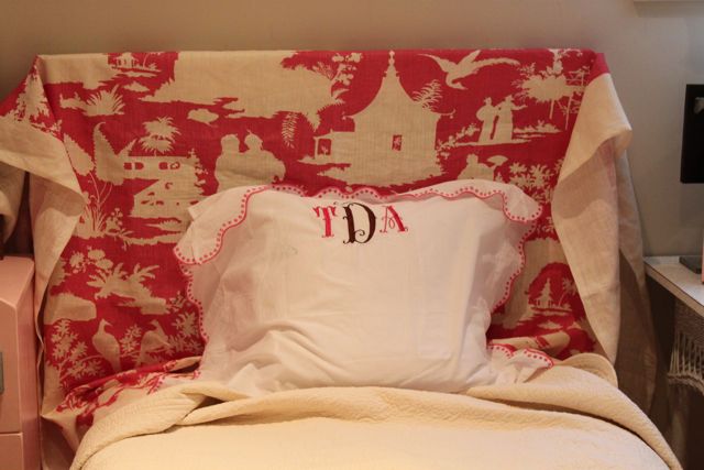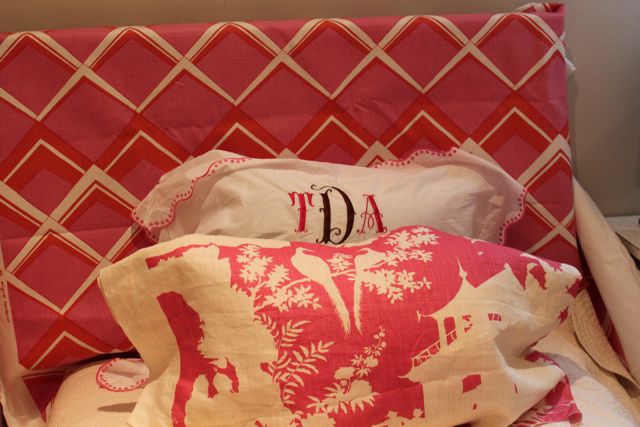 I LOVE the quadrille fabric for the headboard!