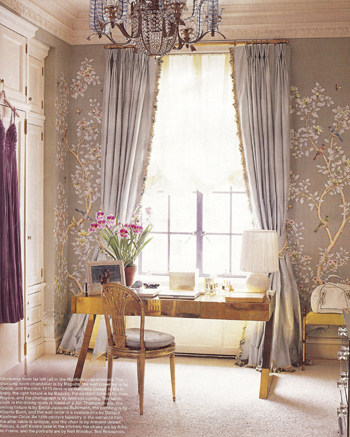 my heart tends to flutter when i look at pictures of amazing chinoiserie wallpaper....it's so classic and timeless. i think one of my favorite pics is the one of the nursery- how brilliant is that and so unexpected (i'm sure she won't be a diva). i think that is why my heart skipped a beat when i found this....and if there is any left, i'm totally using her ;)*images courtesy of gracie, mary mcdonald, de gournay, tory burch/vogue, domino